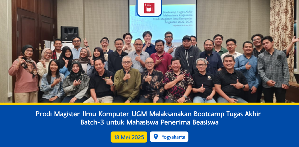 Yogyakarta, 18 Mei 2025 – Program Studi Magister Ilmu Komputer Universitas Gadjah Mada (UGM) kembali mengadakan bootcamp tugas akhir. Kegiatan ini dilaksanakan pada tanggal 16 hingga 18 Mei 2025 di Hotel Grand Keisha Yogyakarta. Bootcamp ini merupakan program rutin yang dilaksanakan untuk memonitor dan mengevaluasi tugas akhir dari mahasiswa penerima beasiswa (LPDP, BPI dan BU). […]