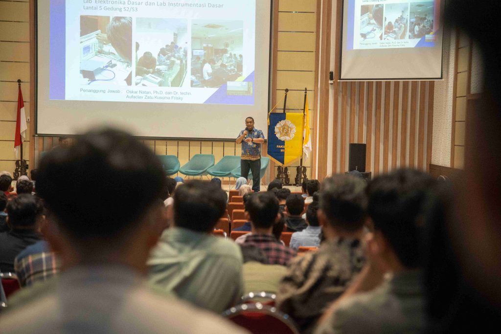 Selanjutnya, Sekretaris Departermen IKE, Dr. Andi Dharmawan, S.Si., M.Cs. memberikan penjelasan mengenai fasilitas yang tersedia di DIKE. Fasilitas tersebut mencakup ruang belajar untuk S1, S2, dan S3, laboratorium dasar, serta sembilan laboratorium riset yaitu Lab Algoritma dan Komputasi (AK), Lab Elektronika Dasar, Lab Instrumentasi Dasar, Lab Komputer Dasar, Lab Rekayasa Perangkat Lunak dan Data (RPLD), Lab Riset Elektronika dan Instrumentasi (ELINS), Lab Riset Sistem Cerdas (SC), Lab Riset Sistem Komputer dan Jaringan (SKJ), dan Lab Sistem Tertanam dan Robotika (STR). Mahasiswa juga memiliki akses ke fasilitas penunjang seperti sekretariat, IUP Lounge, DIKE Lounge, HPC/NVIDIA, serta layanan UGM seperti MS Office 365, akses jurnal internasional, Google Drive, dan One Drive.