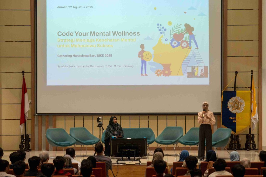 Sesi berikutnya menghadirkan seminar kesehatan mental bertema “Code Your Mental Wellness: Strategi Menjaga Kesehatan Mental untuk Mahasiswa Sukses” oleh Aisha Sekar Lazuardini Rachmanie, S.Psi., M.Psi., Psikolog. Beliau membahas definisi kesehatan mental, tantangan khusus mahasiswa dalam perkuliahan, serta pentingnya memahami kesehatan mental untuk mencegah overwhelmed, menjaga fokus, mendukung kreativitas, hingga membangun hubungan sosial yang sehat. Strategi menjaga kesehatan mental disampaikan melalui manajemen waktu, self-care rutin, teknik relaksasi, hingga membangun support system.