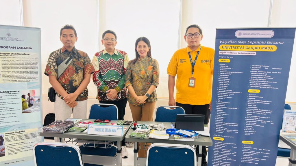 Tim UGM yang hadir dalam kegiatan ini terdiri dari Lukman Awaludin, S.Si., M.Cs. (dosen DIKE), Ahmad Sulaiman, S.Pd., M.Pd. selaku Ketua Tim Kerja Penerimaan Mahasiswa DPP UGM, serta tiga staf dari Bidang Promosi Program Studi FKKMK UGM. Selama dua hari penyelenggaraan, stan UGM mendapatkan antusiasme tinggi dari para pengunjung. Banyak siswa dan orang tua yang berkonsultasi terkait jalur seleksi masuk UGM, kurikulum yang ditawarkan, peluang pengalaman internasional, hingga berbagai skema beasiswa yang tersedia. Serta, informasi mengenai prospek karier lulusan juga menjadi salah satu daya tarik dari peserta pameran.