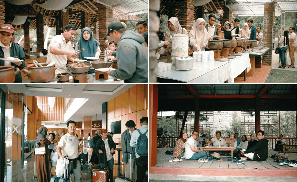 Usai menikmati wisata alam, rombongan melanjutkan kegiatan dengan makan siang bersama di tepi Sungai Serayu sebelum menuju penginapan di Banjarnegara. Setelah waktu beristirahat, kegiatan malam hari diisi dengan acara kebersamaan dan makan malam bersama yang berlangsung dalam suasana hangat dan penuh canda.