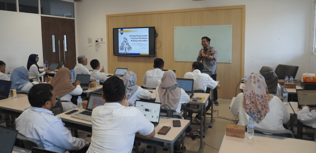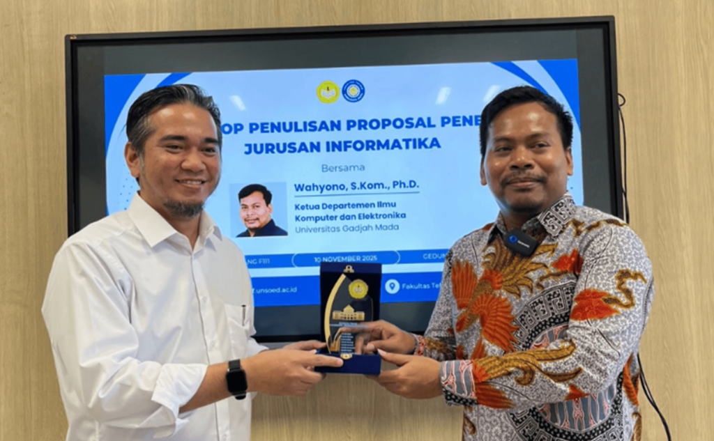 Purwokerto, 10 November 2025 – Dosen Departemen Ilmu Komputer dan Elektronika (DIKE), Fakultas MIPA, Universitas Gadjah Mada, Wahyono, S.Kom., Ph.D., menjadi narasumber dalam kegiatan Workshop Penyusunan Proposal Hibah Penelitian yang diselenggarakan oleh Jurusan Informatika, Fakultas Teknik, Universitas Jenderal Soedirman (Unsoed), Purwokerto. Kegiatan yang berlangsung pada hari Senin, 10 November 2025, ini diikuti oleh dosen-dosen dari lingkungan Jurusan Informatika Unsoed.
