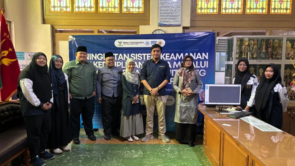 Yogyakarta, 30 Oktober 2025 – Laboratorium Sistem Komputer dan Jaringan (Lab SKJ) Departemen Ilmu Komputer dan Elektronika (DIKE) FMIPA UGM berhasil mengimplementasikan sistem smart monitoring terpadu berbasis teknologi face recognition HIKVISION di MAN 2 Yogyakarta. Kegiatan ini merupakan bagian dari program Pengabdian kepada Masyarakat (PkM) bertema “Peningkatan Sistem Keamanan dan Kedisiplinan Siswa melalui Teknologi Smart Monitoring” yang dilaksanakan secara bertahap sejak Juli hingga Oktober 2025. Tujuan program ini adalah menghadirkan solusi digital yang mempermudah proses perizinan siswa selama jam pelajaran.
